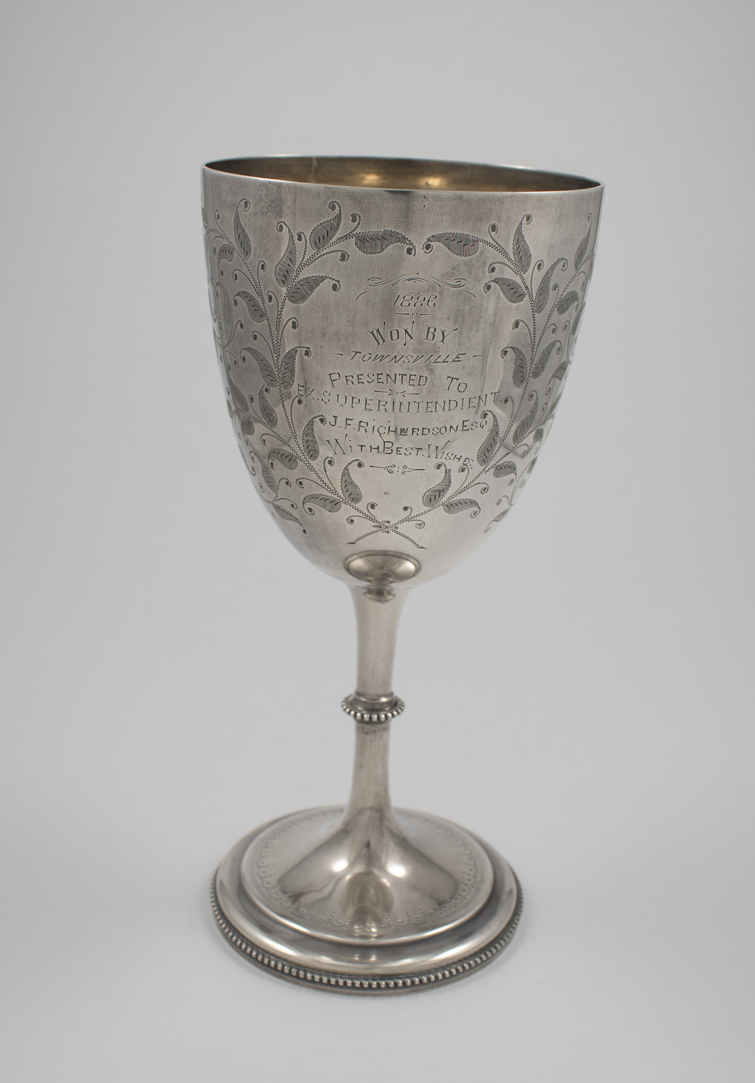 1886 won by Townsville presented to Ex. Superintendent J.F. Richardson Esq. with best wishes
